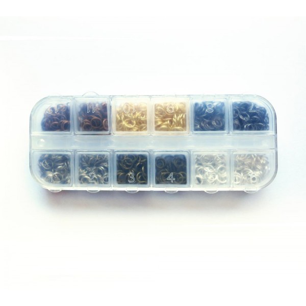 600 runde und filigrane, Biegeringe im farbigen Mix in der Größe 6mm in einer praktischen Sortierbox. Mit den Biegeringen lassen sich viele Arten von Schmuckverschlüssen an Gliederketten u.ä. anbringen, aber man benötigt auch Biegeringe und Spaltringe um z.B. Anhänger zu befestigen.
