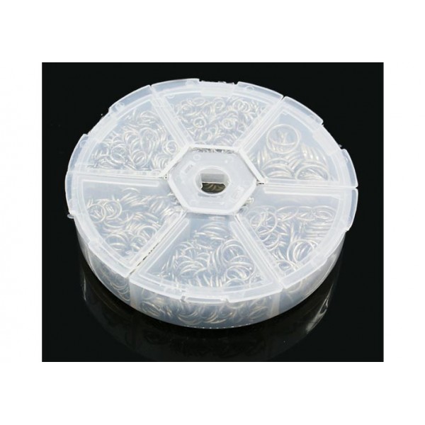 1745 runde und filigrane, silber Biegeringe in einer praktischen Sortierbox. Mit den Biegeringen lassen sich viele Arten von Schmuckverschlüssen an Gliederketten u.ä. anbringen, aber man benötigt auch Biegeringe um z.B. Anhänger zu befestigen.