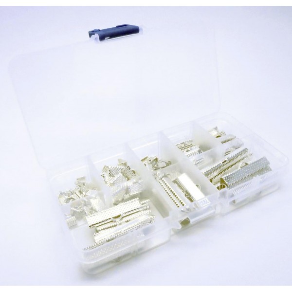 Hochwertiges Schmuckzubehör-Set bestehend aus hellsilber Bandklemmen in den Größen: