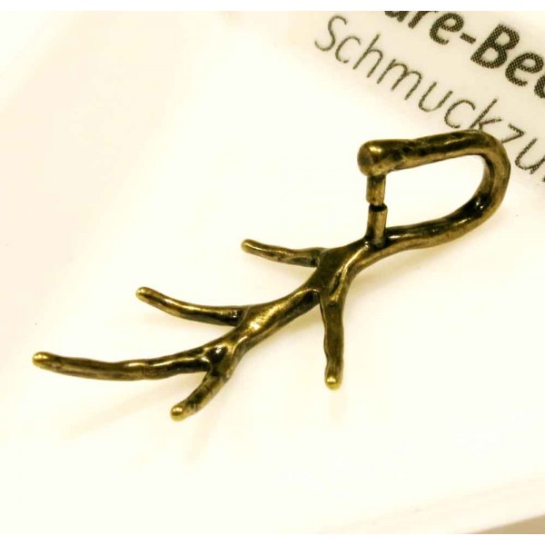 1x bronze Collierschlaufe bzw. Anhängerhaken in filigraner Form eines Astes. Die stabilen, bronze Haken für die Schmuckherstellung sind für die Befestigung von gebohrten Anhängern gedacht, sie werden einfach mit einer Zange (mit glattem Profil) zusammengedrückt. Mit den bronzefarben Ösen kann man z.B. Kettenanhänger herstellen.