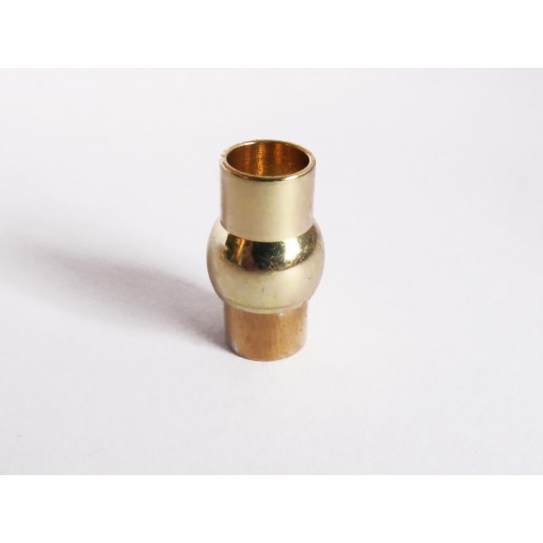 1x zylindrischer goldfarben Magnetverschluss als Verschluss zum Einkleben, als goldfarben Schmuckverschluss für z.B. Lederband, Kordeln und anderes rundes Schmuckband. Die goldfarbenen Magnetverschlüsse sind einfach zu bedienen und werden beim Schliessen ineinander gesteckt. Dieser Magnetverschluss ist ein stabiler Steckverschluss.