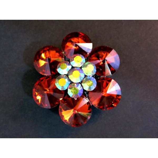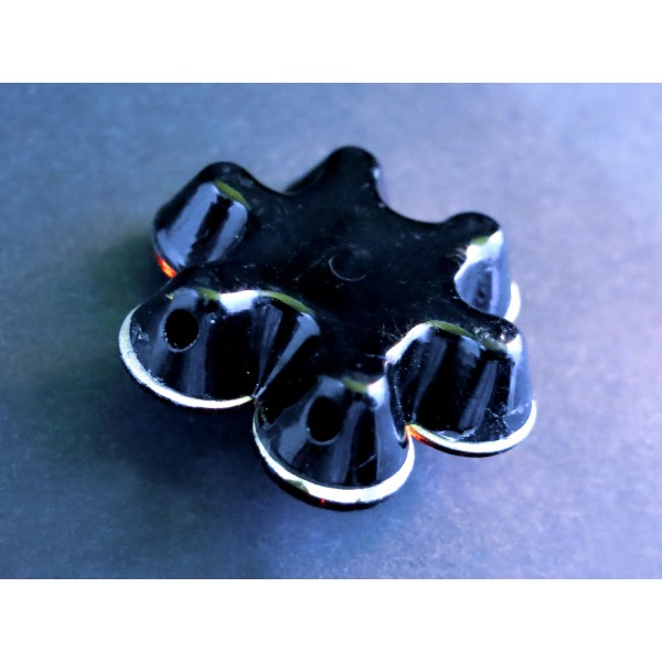 1 große dunkelorange Resinperle mit zwei Fädellöchern in Blumenform AB-Effekt in der Blütenmitte. Der opulente glitzernde Kettenteiler besitzt 2 Fädellöcher auf der schwarzen Rückseite.