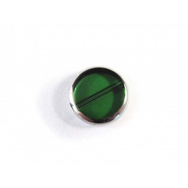 1 grüne Fensterperle / Glasperle mit Silberrahmen. Die durchsichtige, kreisrunde grüne Window Bead hat eine Stärke von 4mm.