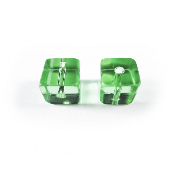 10 Stück helle grüntönige Glaswürfel Glasperlen. Die durchsichtigen, würfelförmigen Glasperlen haben eine Kantenlänge von 8mm.