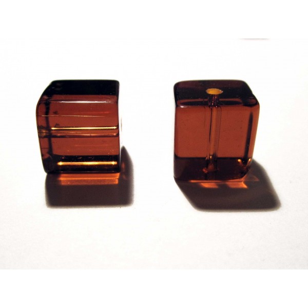 4 Stück braune Glaswürfel Glasperlen. Die durchsichtigen, würfelförmigen Glasperlen haben eine Kantenlänge von 10mm.