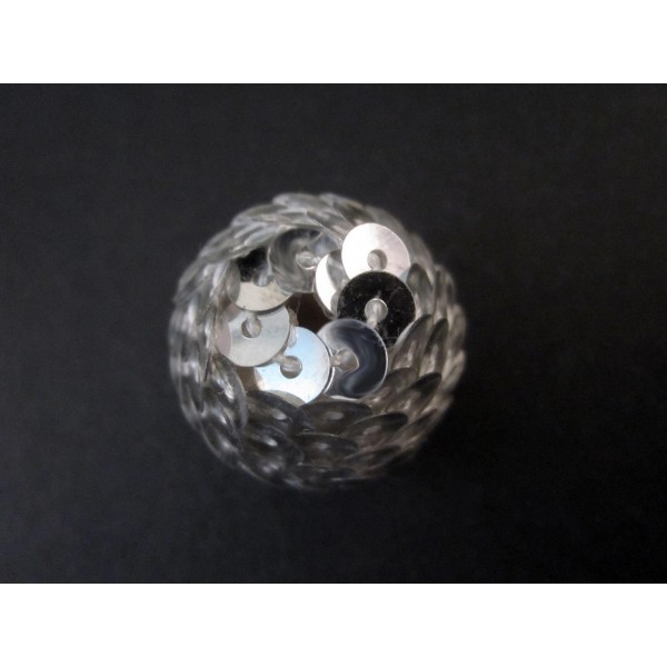 1x große und glitzernde, runde Kunststoffperle mit silberfarbenen Pailletten mit einem Durchmesser von 22mm. Auch schön als Weihnachtskugel für den Schmuckbereich.