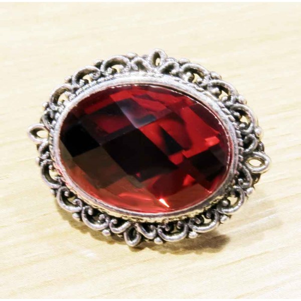 1x rote Glas Schiebeperle in der Größe 26x21mm mit einem ovalen, siamroten geschliffenen Glascabouchon auf filigraner, antiksilberfarbener Fassung.