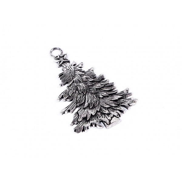 1 silber Anhänger in Form eines filigranen Weihnachtsbaumes als Schmuckanhänger oder Weihnachtsanhänger für die eigene kreative Schmuckherstellung.