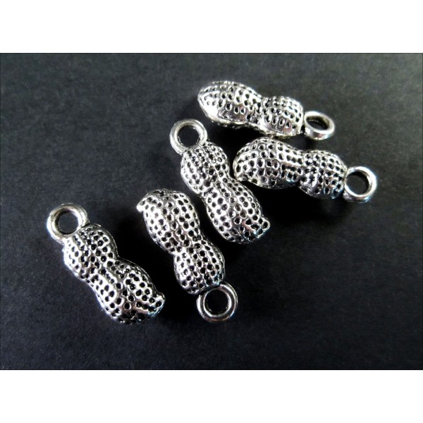 2 silberfarbene Anhänger als Erdnuss - Peanuts als Schmuckanhänger für die eigene kreative Schmuckherstellung. Die silbernen Erdnussanhänger sind massiv gearbeitet.