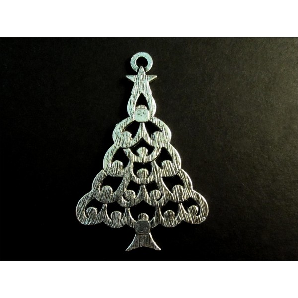 1 großer silberfarbener Anhänger in Form von einem filigranen Weihnachtsbaum als Schmuckanhänger oder Weihnachtsanhänger für die eigene kreative Schmuckherstellung. Der silberfarbene Weihnachtsbaum bzw. Tannenbaum, ist auf der Vor- und Rückseite unterschiedlich ausgeführt, s. Foto.