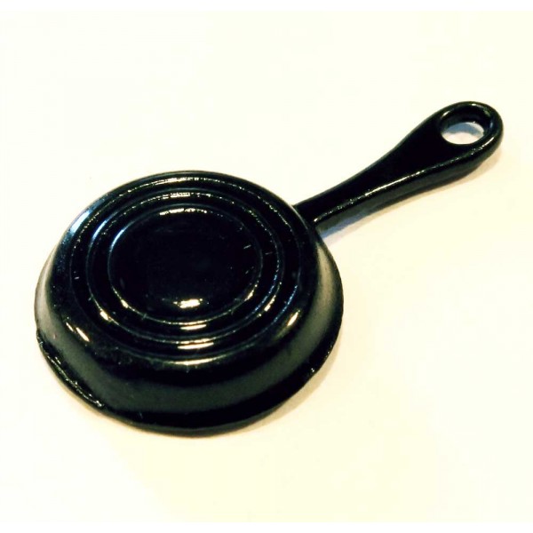 1 Schmuck Anhänger in Form einer schwarzen Pfanne mit Spiegelei.