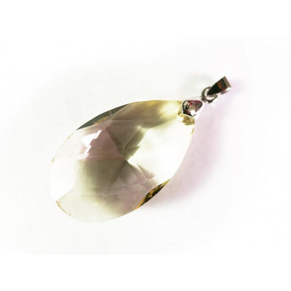 1 großer Glasanhänger in der Größe 52x22mm in Tropfenform in champagnerfarben. Der Ahänger besteht aus geschliffenem Glas sieht sehr edel aus und eignet sich vor allem als Kettenanhänger. Aufgehängt ist der champagner Glastropfen an einer silberfarbenen Collierschlaufe.