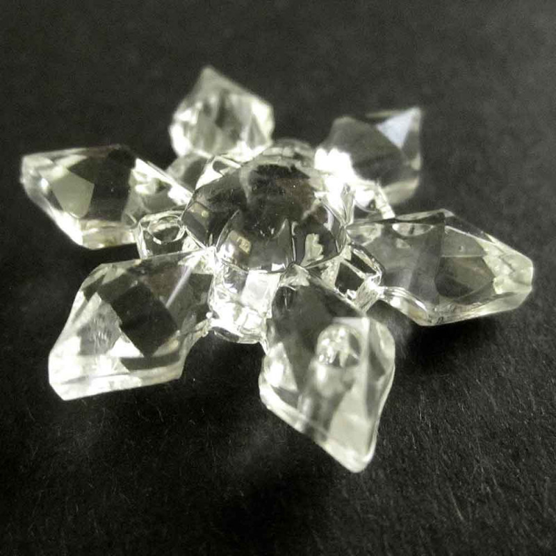 1x transparenter Kettenverbinder bzw. Schmuckanhänger in Schneeflockenform. Mit den mittelgroßén Schmuckverbindern kann man Ketten oder Ohrringe zusammenführen.