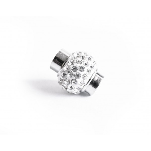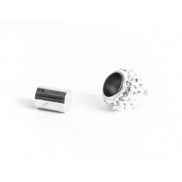 5x silberfarbenER weißer Strass Magnetverschluss als Verschluss zum Einkleben als silberfarben Schmuckverschluss für z.B. Lederband, Kordeln und anderes rundes Schmuckband mit einer Dicke von 7mm. Die silberfarbenen Magnetverschlüsse sind einfach zu bedienen und werden beim Schliessen ineinander gesteckt. Dieser Magnetverschluss ist ein stabiler Steckverschluss.