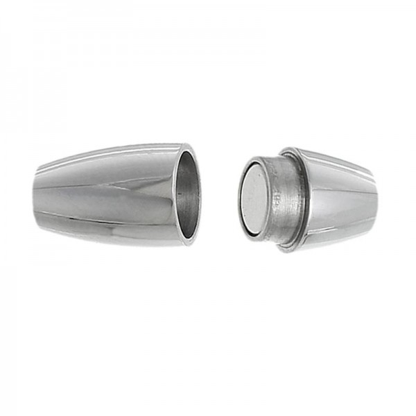 1x silberfarben Edelstahl Magnetverschluss als Verschluss zum Einkleben als silberfarben Schmuckverschluss für z.B. Lederband, Kordeln und anderes rundes Schmuckband mit einer Dicke von 5mm. Die silberfarbenen Magnetverschlüsse sind einfach zu bedienen und werden beim Schliessen ineinander gesteckt. Dieser Magnetverschluss ist ein äußerst stabiler Steckverschluss.