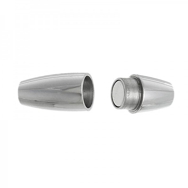 silberfarben Edelstahl Magnet Verschluss in eleganter Olivenform zum Einkleben von rundem Schmuckband und Kordeln