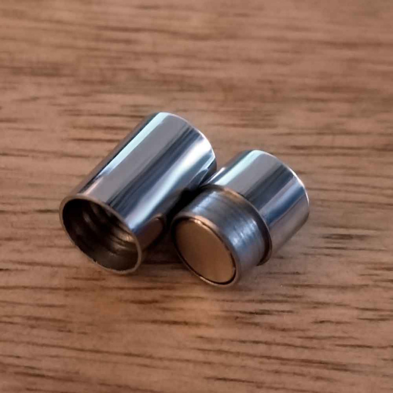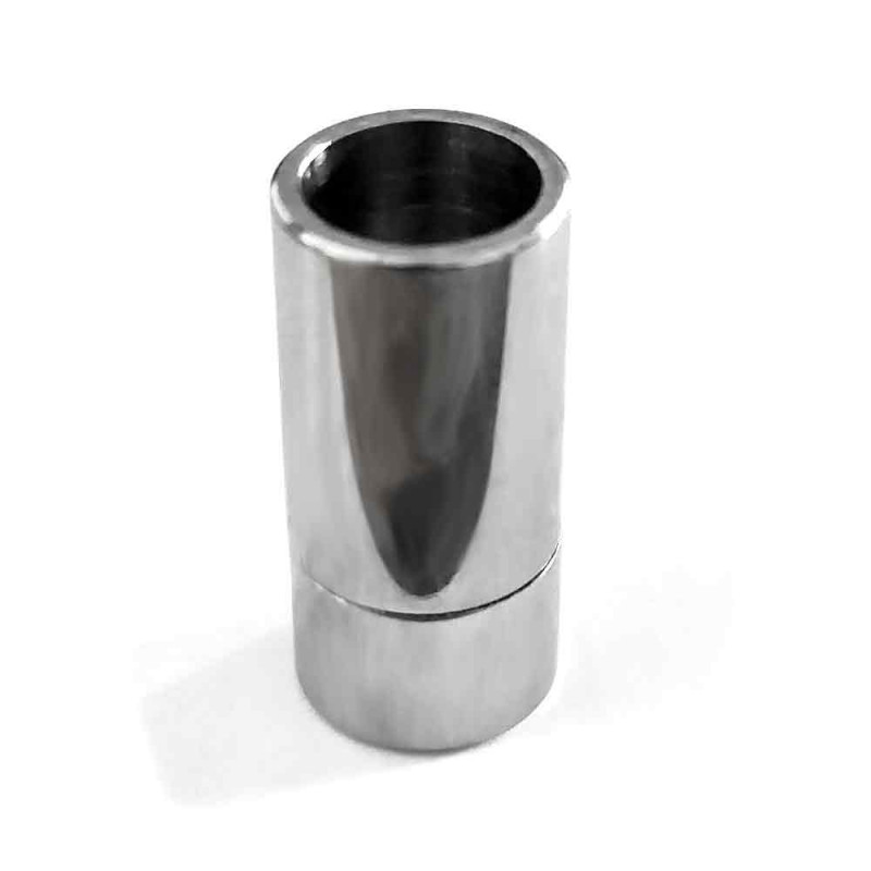 silberfarbener Edelstahl Magnet Verschluss in schlichter Zylinderform zum Einkleben von rundem Schmuckband und Kordeln